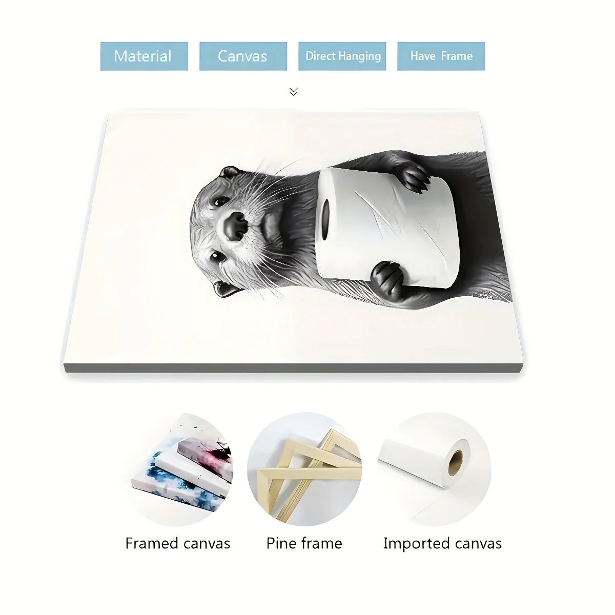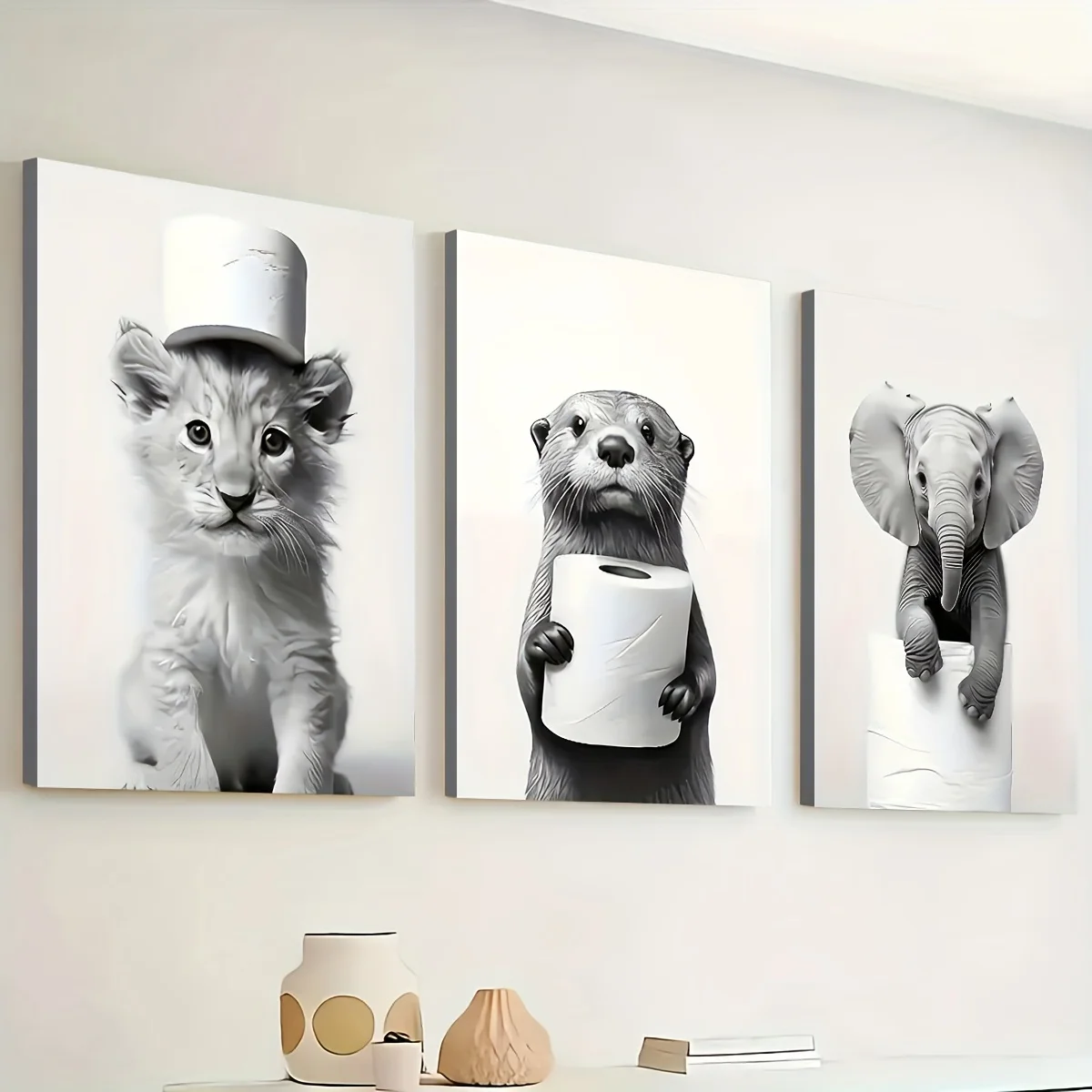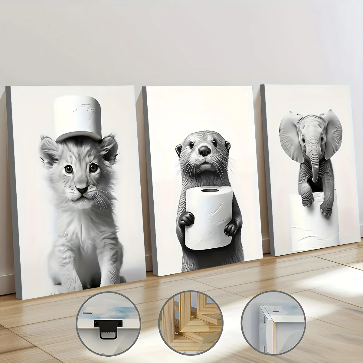 3PCS Framed Canvas Painting Ready To Hanging Monochrome Modern Fashion Animal Bathroom Art Home Decor Wall Art Room Decor Gift