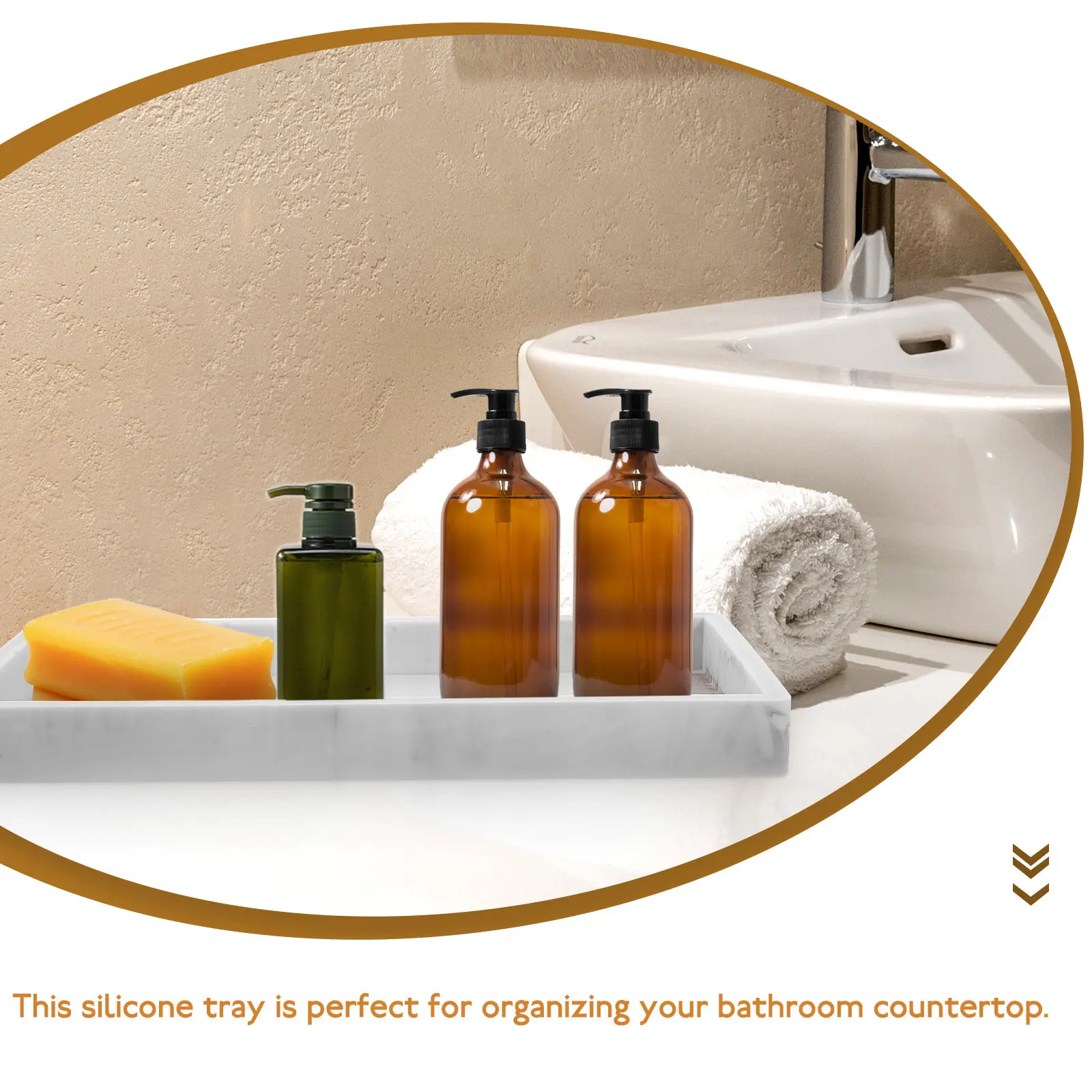 Vanity Tray Silicone Bathroom Counter Organizer for Toiletries Cosmetics Jewelry Rings Keys Shampoo Lotion Bottles Decorative